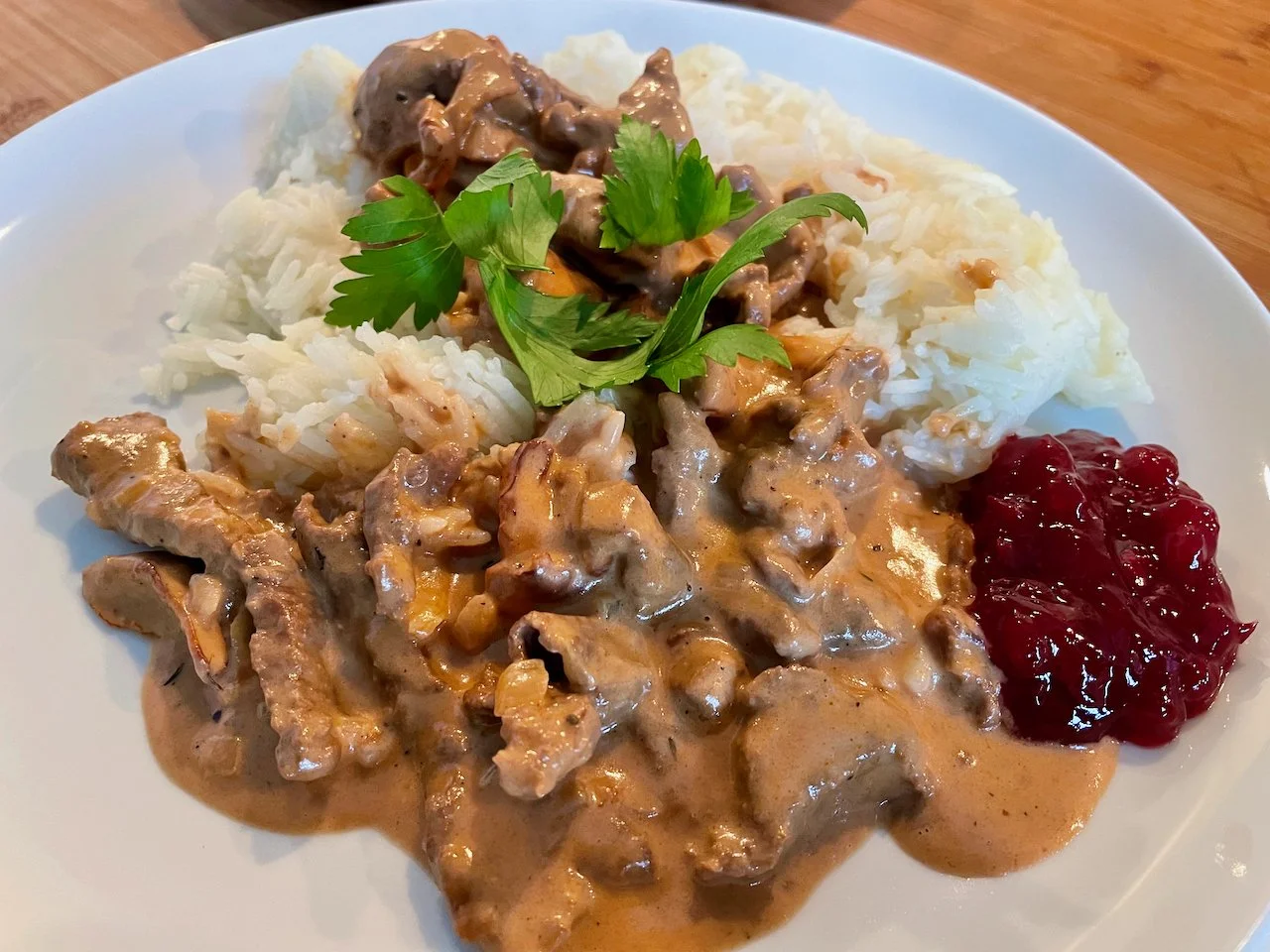 4. Serve with rice or boiled potatoes, and tangy lingonberry jam. Enjoy your meal!