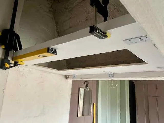 Would it fit inside the hood? The height of the kitchen fan had to be considered in relation to the slanting side of the range hood. This meant it couldn’t be placed exactly in the center. But what should support it – heavy material or something lighter?