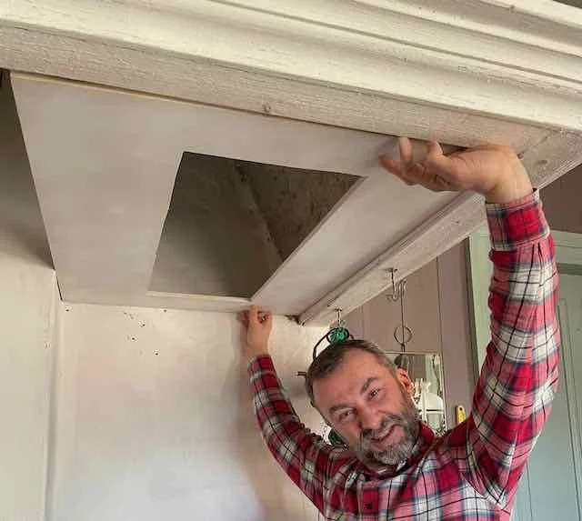 The kitchen transformation began with the old range hood – but there was a challenge. A modern, integrated electric fan needed to be installed, but it cannot be placed directly above a wood-fired stove. The intense heat from the fire could damage the fan – or even create a fire hazard – so careful planning was essential.