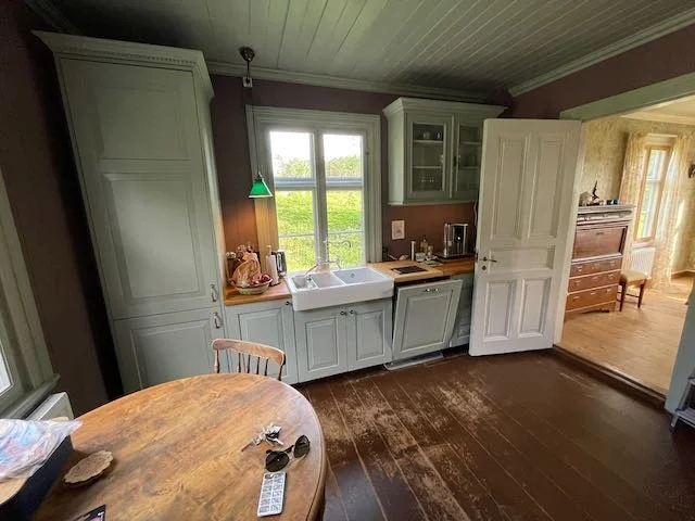 The main house, with its three façades, represents a style of larger rural residence built in north-western Sweden during this period. The design reflects both the architectural preferences of the time and the practical needs of the family who built it, with many of these qualities still visible in the home’s authentic features.