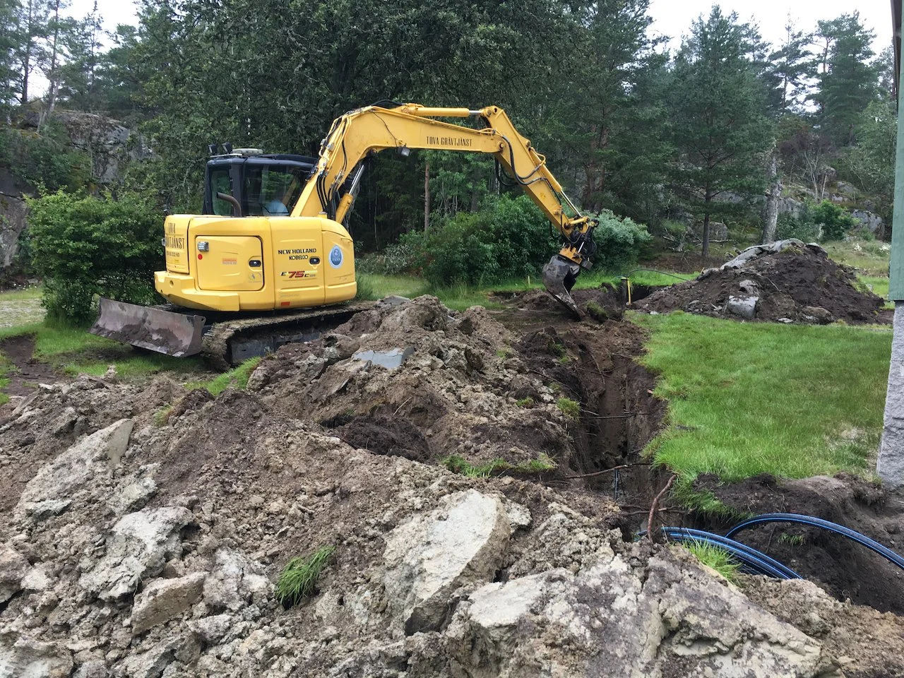With new drainage, electrical lines, waste systems, and water pipes required, the project became a natural opportunity to rethink the garden as a whole. Large machinery was brought in, and the landscape was carefully reshaped - excavating for a retaining wall while building up and defining key areas of the terrain.