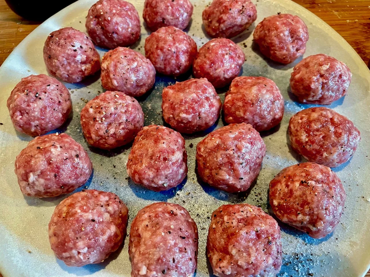 Keep a bowl of cold water nearby and wet your hands before shaping the meat mixture into uniform-sized balls. You can use a tablespoon to help gauge the correct size.