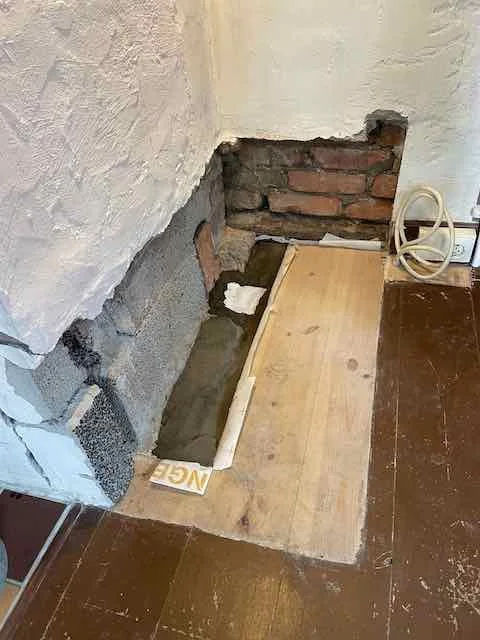 The void had to be secured. It was carefully filled with fireproof cement and sealed to ensure structural stability and, importantly, to prevent mice from entering from below.